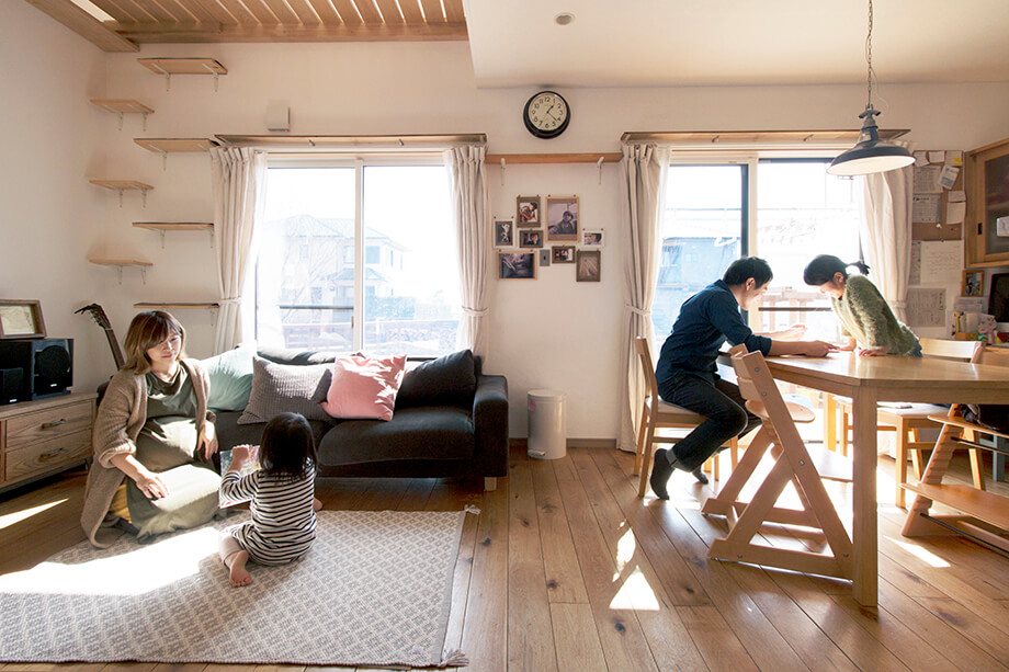 肌で感じる素材感を大切にしながらもコストを押さえた家族に優しいナチュラルスタイルのお家です。