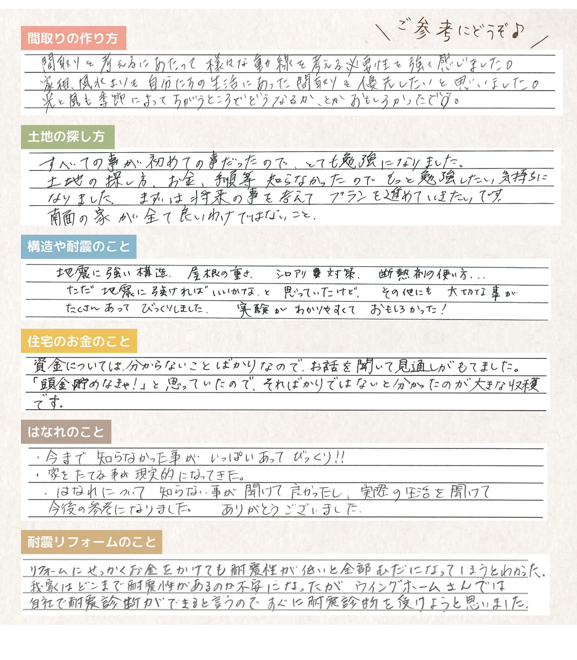 ですので、しつこい営業はいたしません。お施主様の家づくりの想いをゆったりと感じていただけたら嬉しいです。
