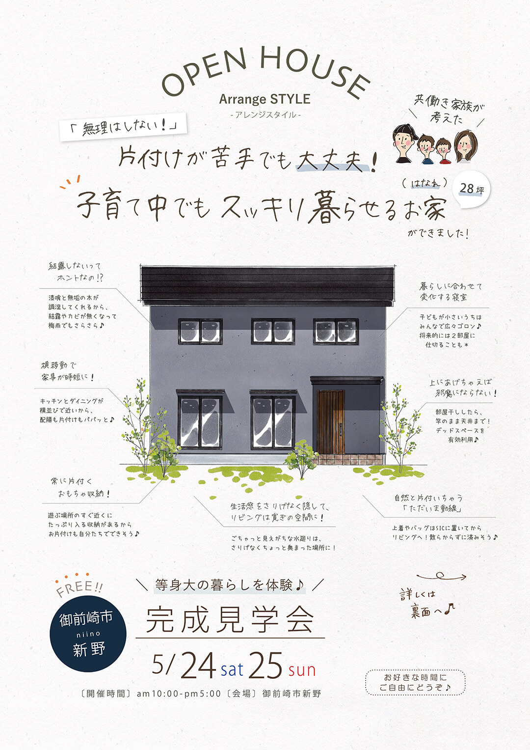 時間・場所 :10:00~17:00【今回はお好きな時間にご自由にお越しいただける見学会です※ご予約不要】・御前崎市新野