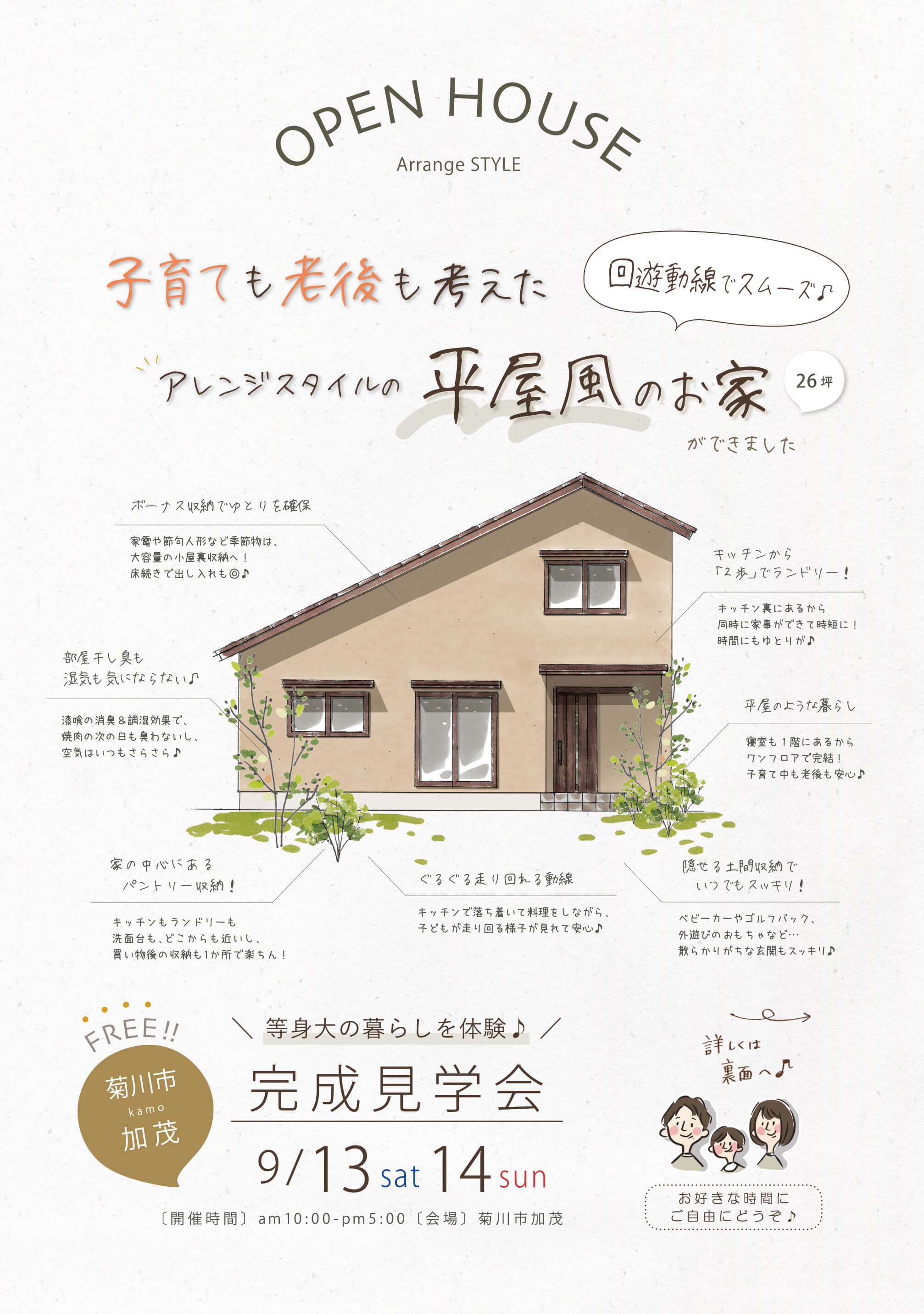 | 時間・場所 | :10:00~17:00【今回はお好きな時間にご自由にお越しいただける見学会です※ご予約不要】・菊川市加茂 |