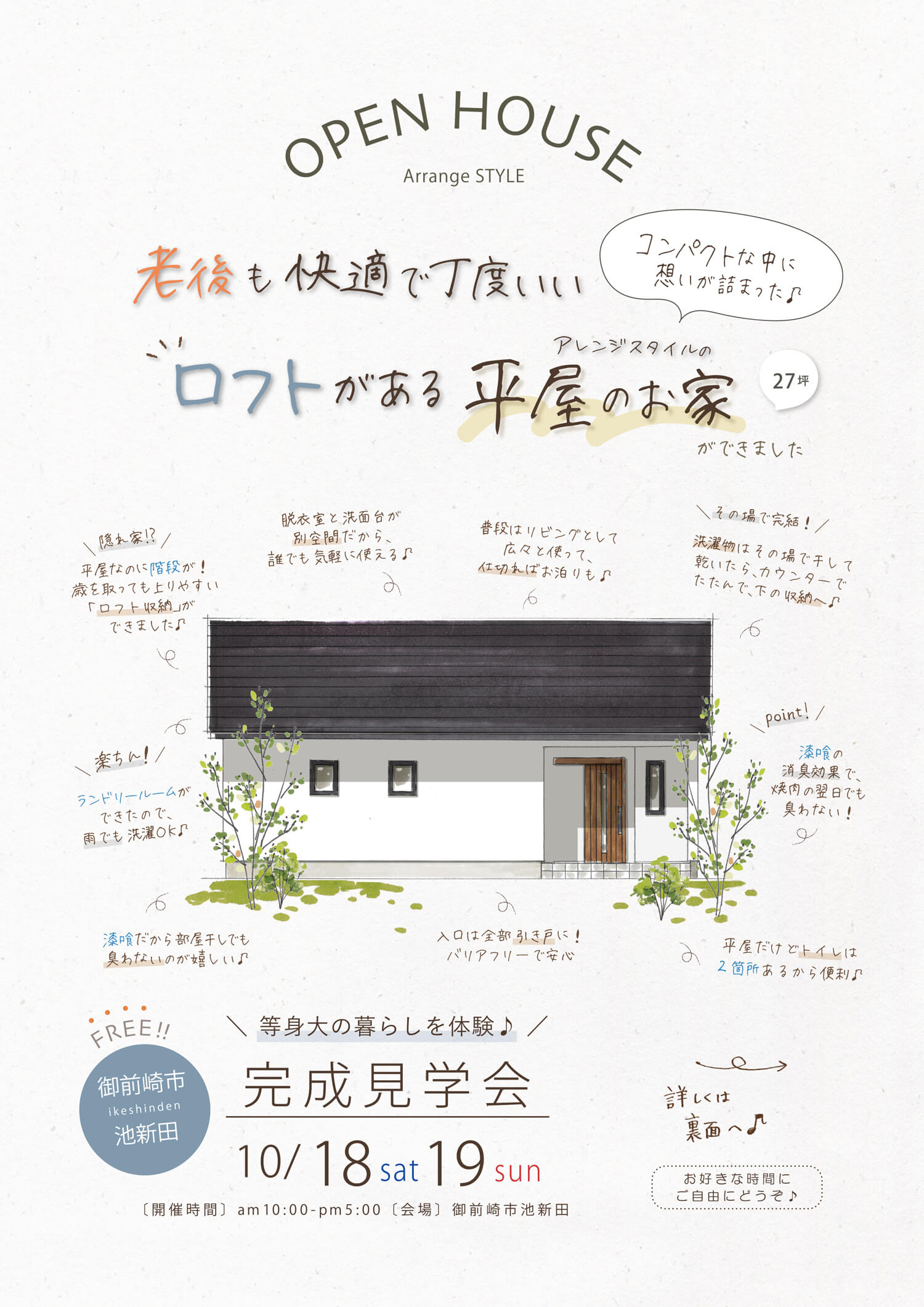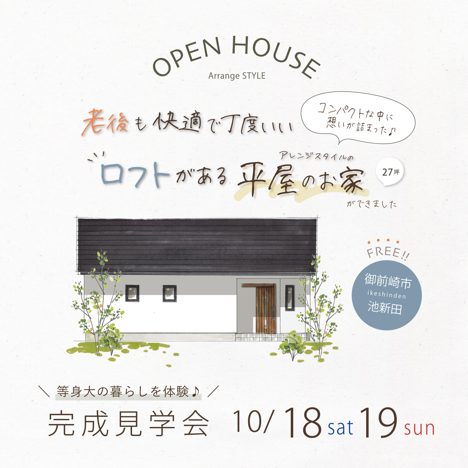 時間・場所 :10:00~17:00【今回はお好きな時間にご自由にお越しいただける見学会です※ご予約不要】・御前崎市池新田