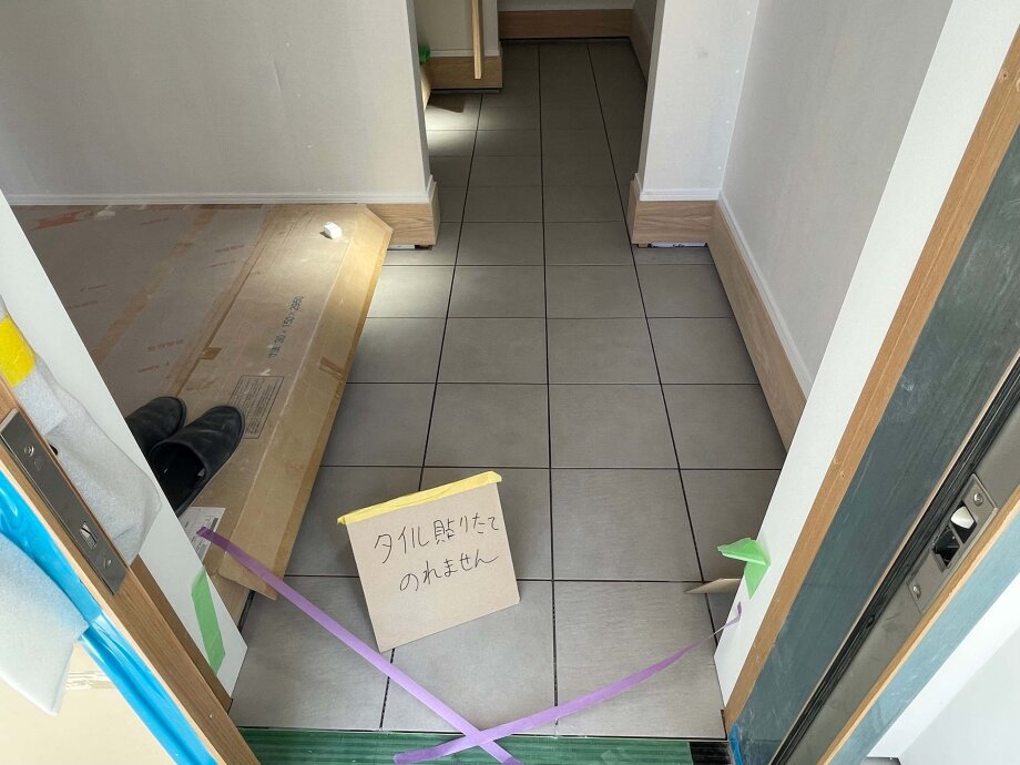タイルが貼り終わったところでした。