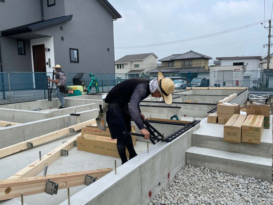 土台据えを行っていましたよ。