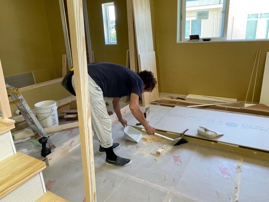 中に入ると大工さんは掃除中。