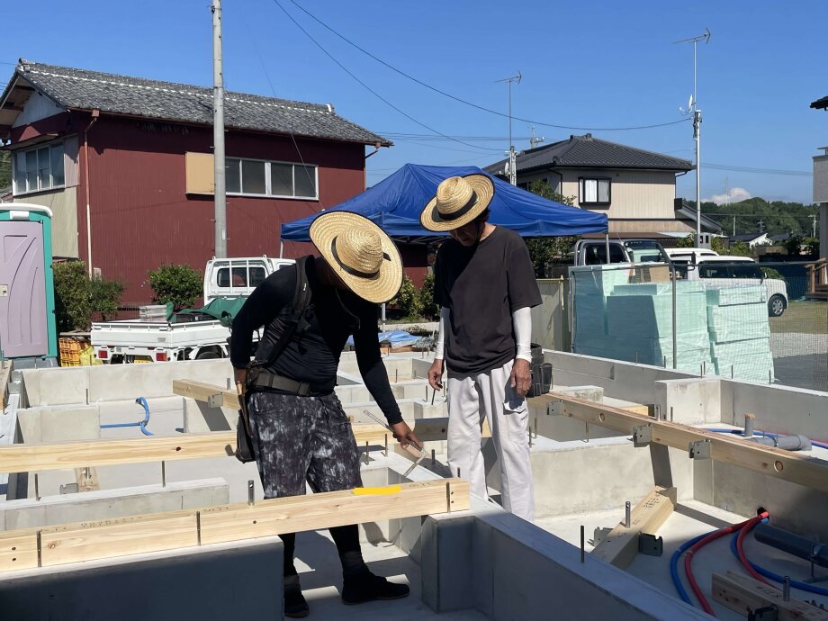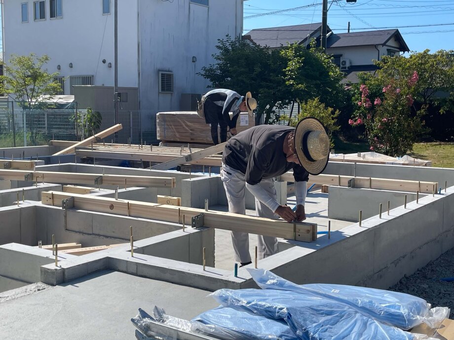 土台据えが行われていましたよ。
