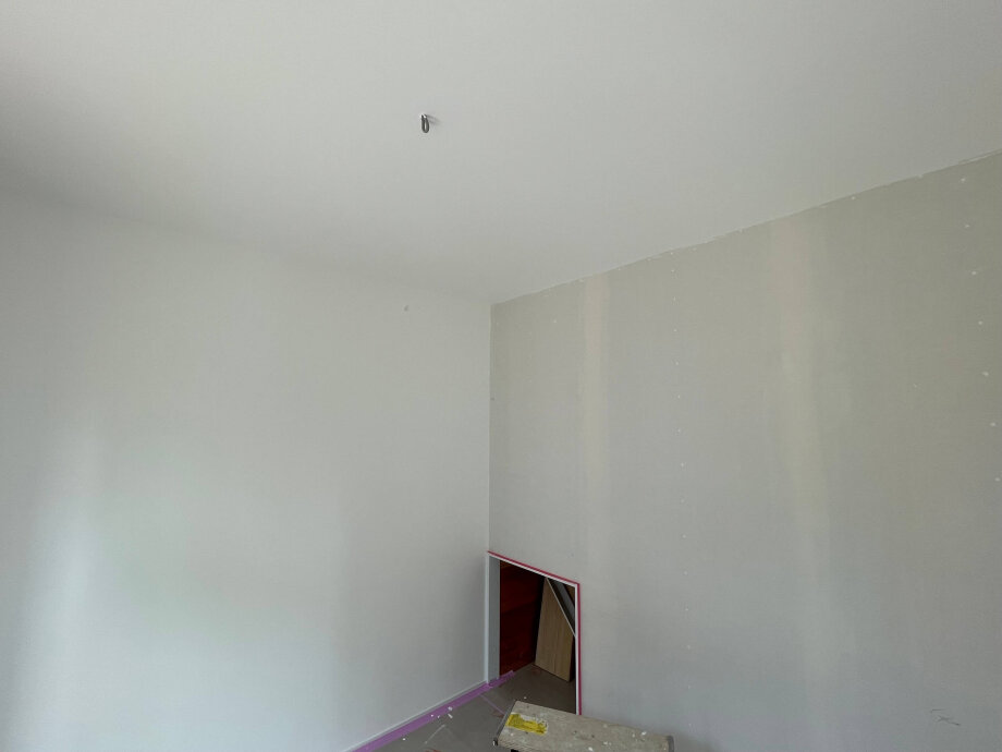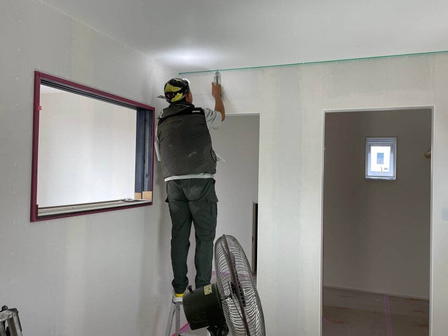 ボードの継ぎ目をパテ処理した様子が