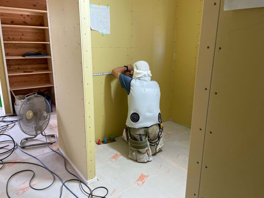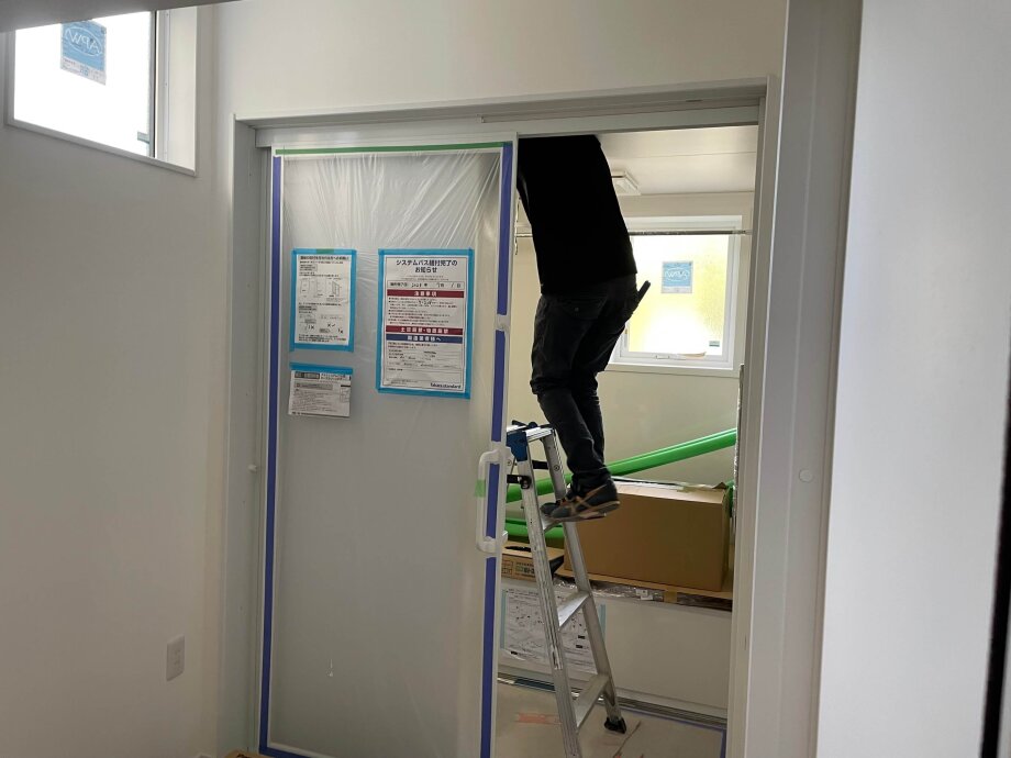 この日は電気屋さんが浴室で作業中。