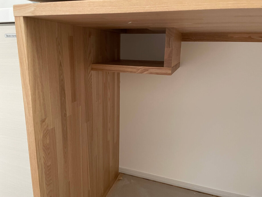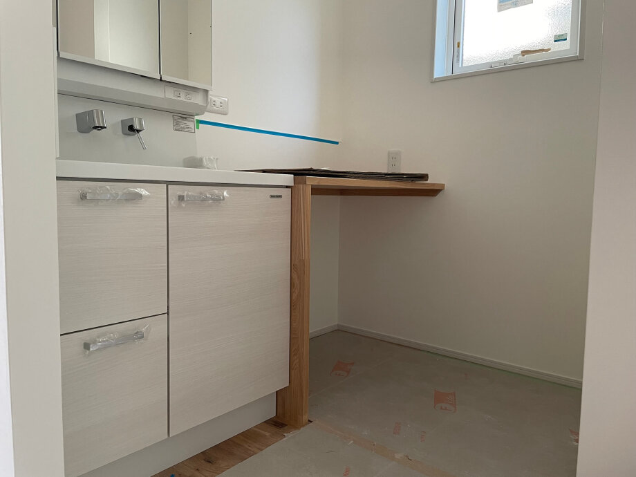 前回作業中だった洗面コーナーの棚。