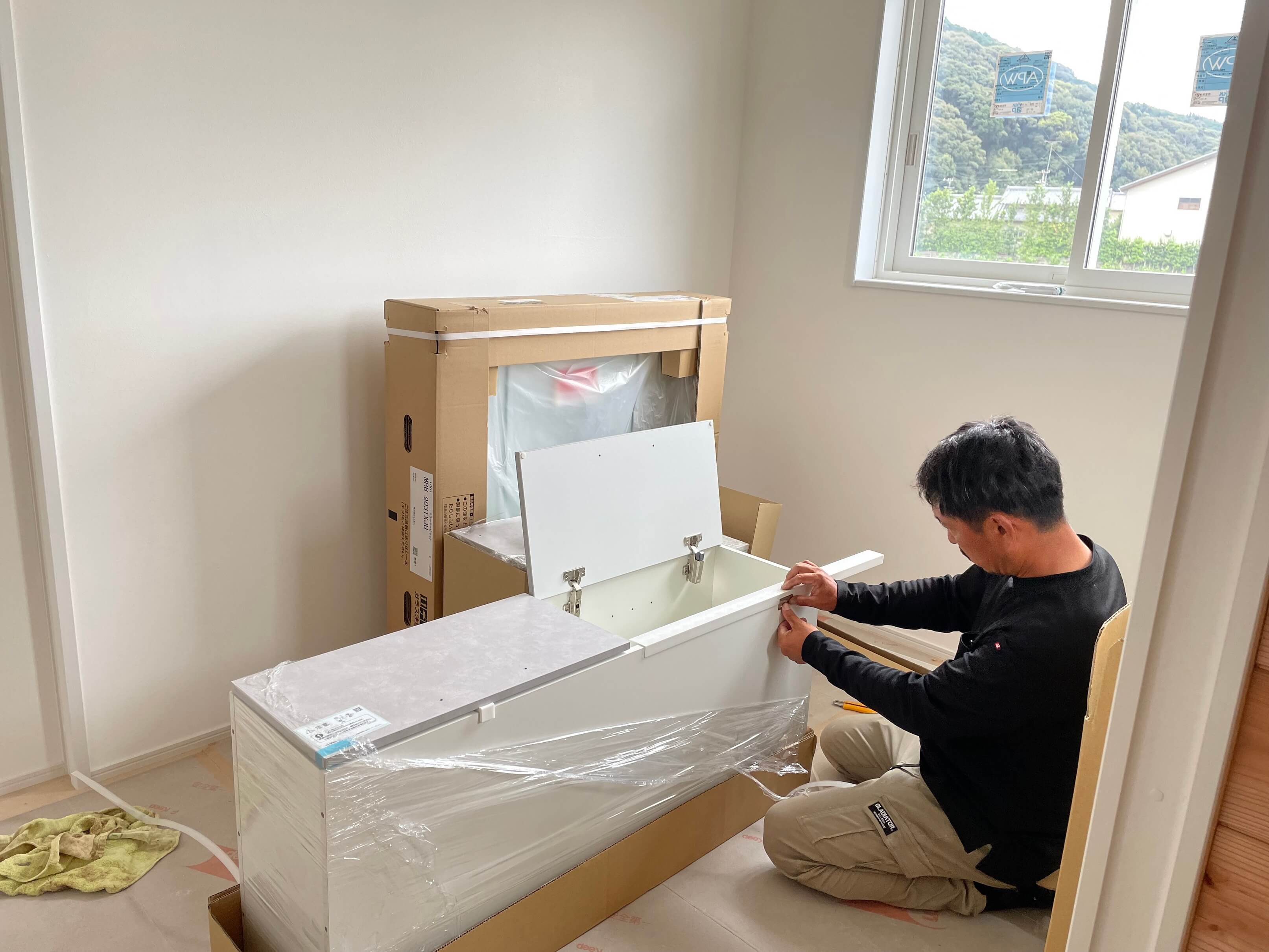 洗面台に取り掛かっていました♪