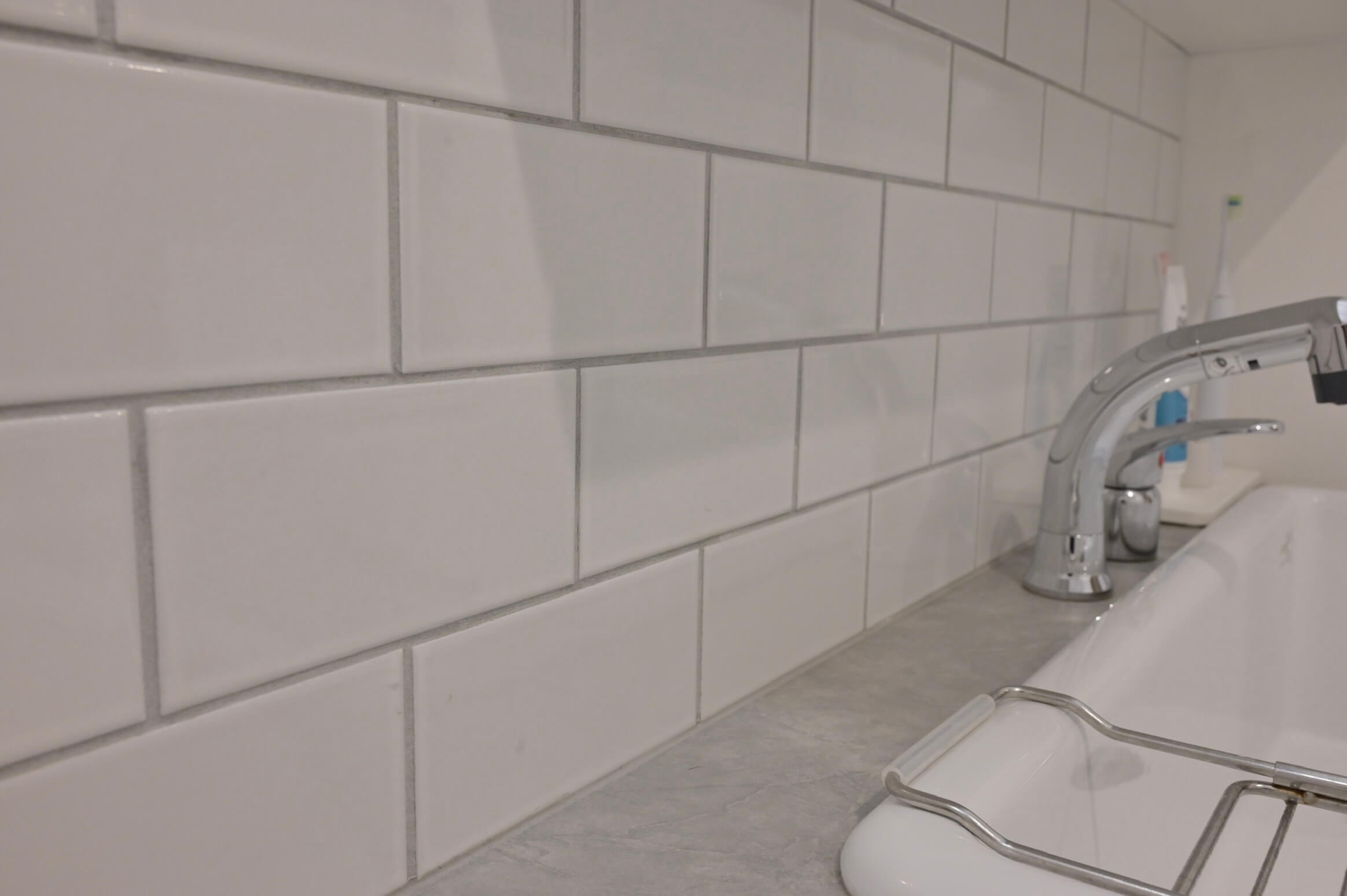 水栓まわりの水ハネ、床への水ハネが少し気になるところです。