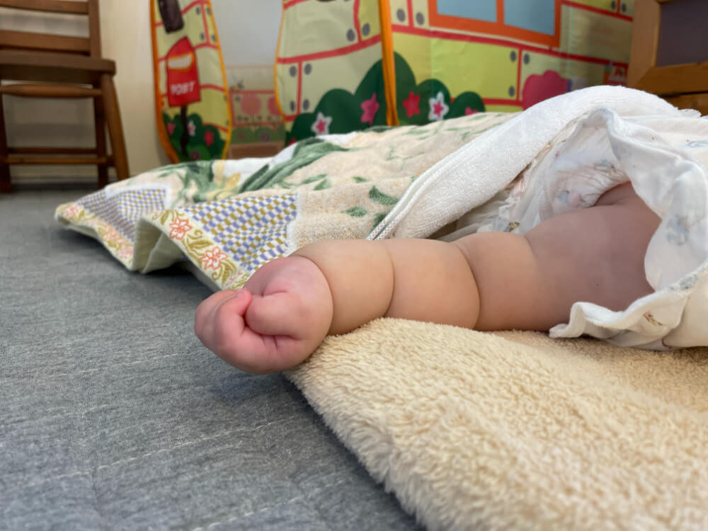 ↑お打合せ中のお昼寝をしているMちゃんのおてて*