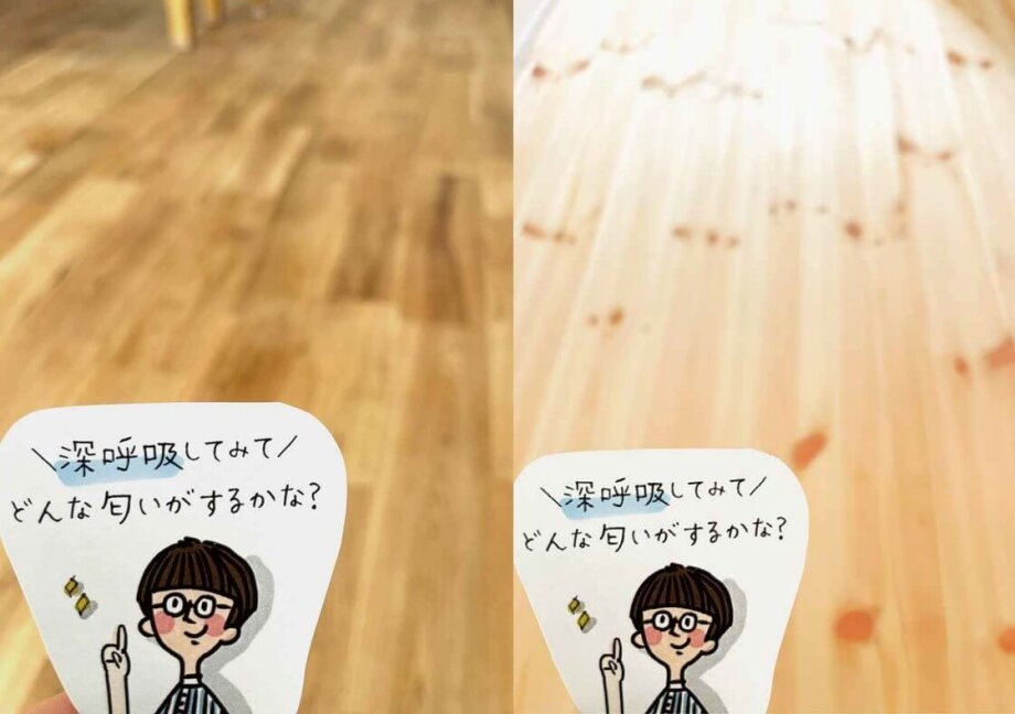 ほのかに赤みのある色合いと優しい肌触りのクルミと、柔らかくて温かみのある足触りのパイン、ぜひ見学会場にて直接体感していただけたらと思います*
