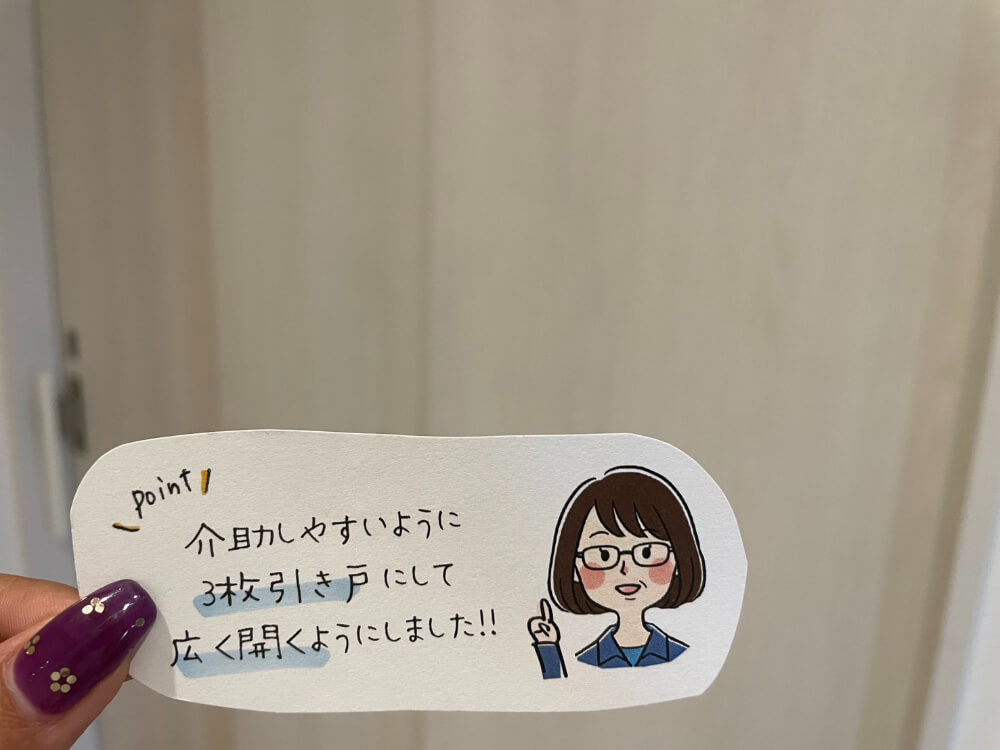 3枚扉で入り口が広いのでストレスなく介護ができます^^*