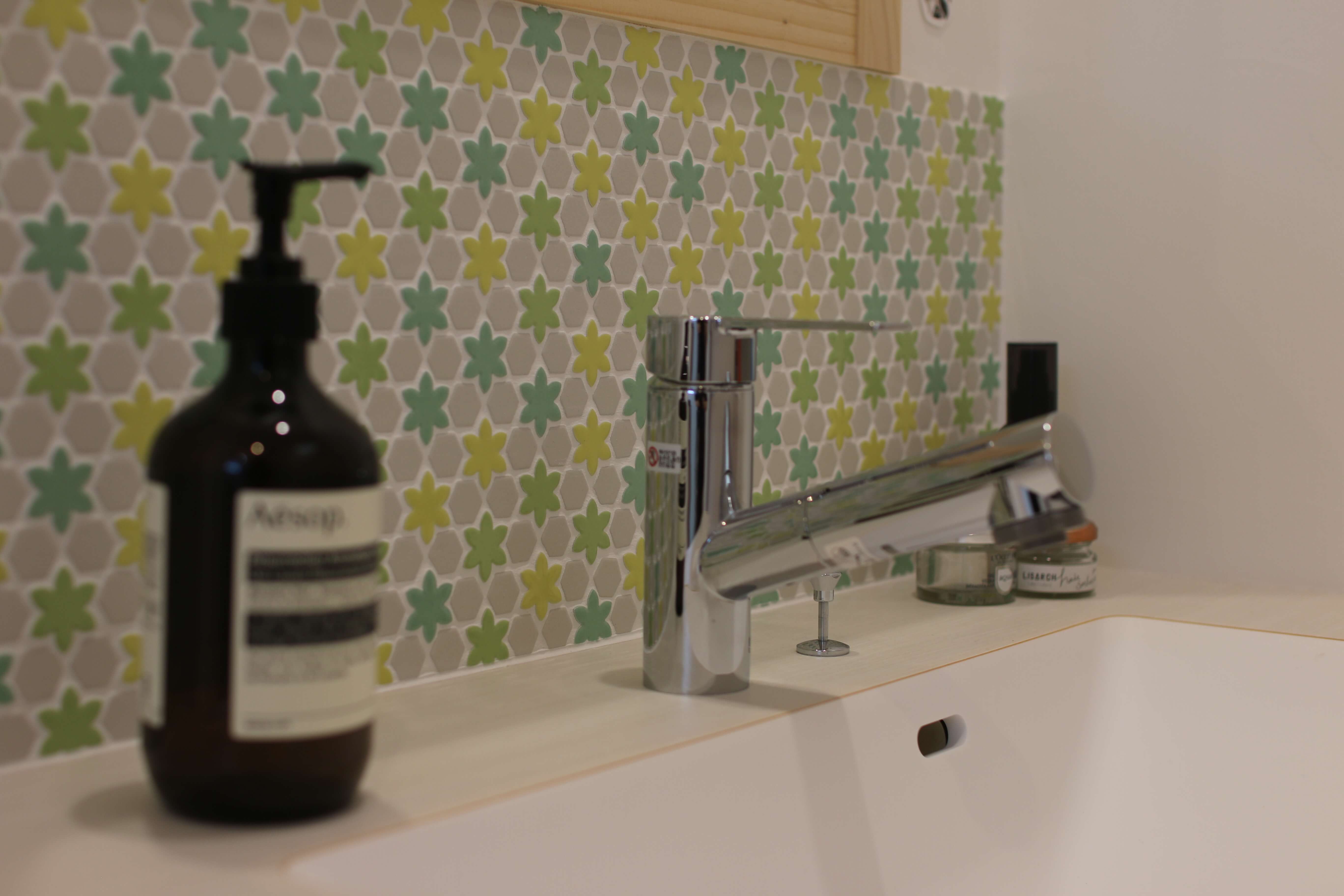 *お気に入りのタイルがかわいい洗面