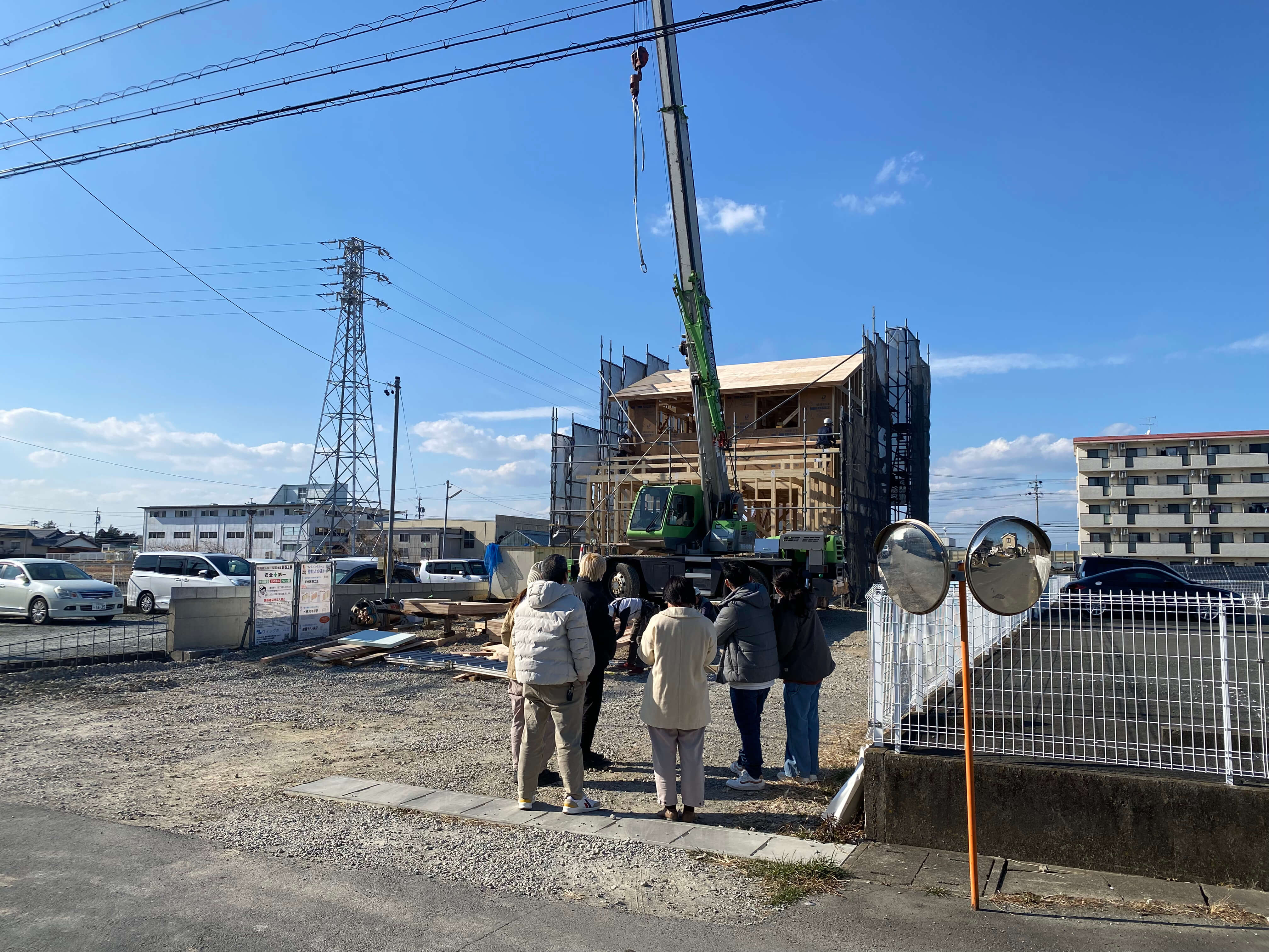 2月上棟当日には、YさんRさんのご家族も現場に足を運んでくださり、