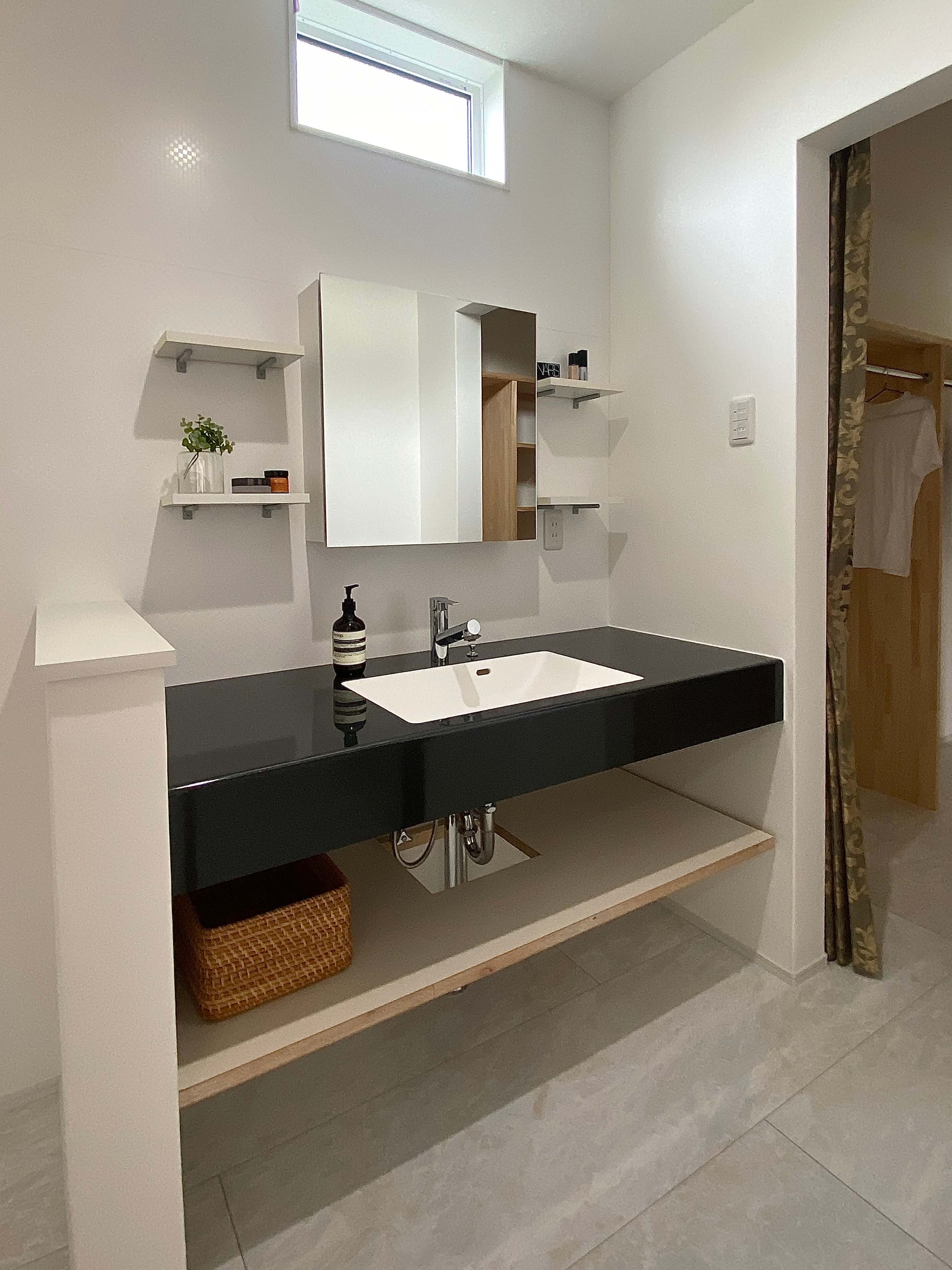 ブラックとホワイトですっきりとコーディネートされたホテルライクな洗面です✧