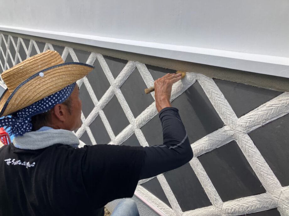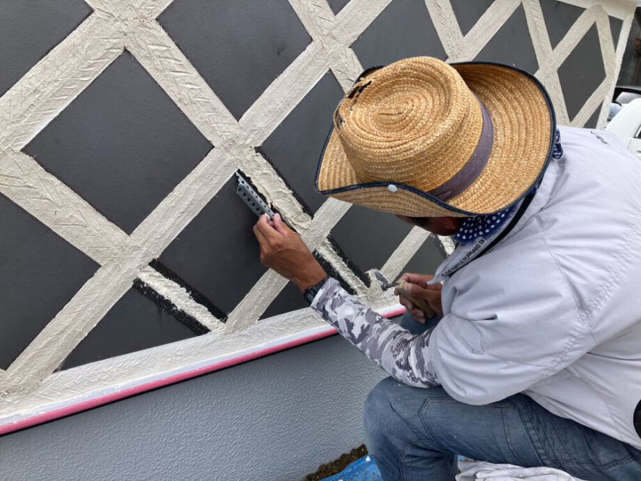 漆喰がはみ出すぎないよう、丁寧に定規をあてながら作業してくれていました。