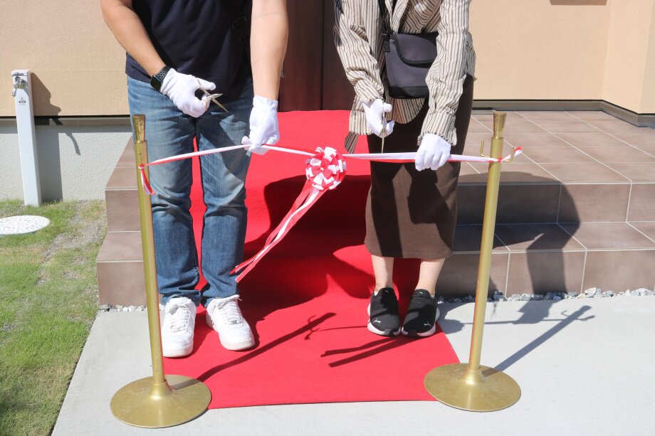 仲良くテープカットを行い、奥様Yさんが代表して新しい鍵でお家を開けてくださいました♪