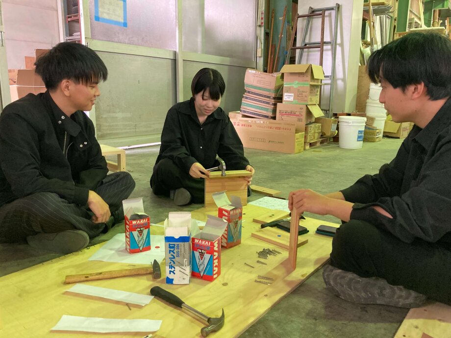 今年は大束くんを先頭に作る物や、サイズ、手順、材料の種類など話し合いを重ね、『ディスプレイハウス』、『引出し付きサイドテーブル』に決定しました!