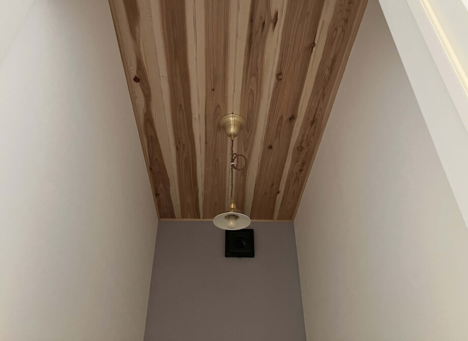 天井に杉板を使い、入って正面の壁には色漆喰を使うことで落ち着いた雰囲気となっています。