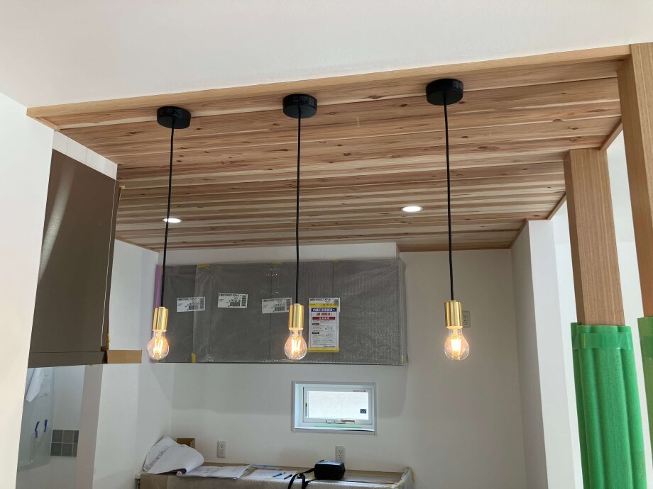 今回は完成清掃が終わっていない状況ですので全景が載っていないのですが、天井を杉板張りにしているお部屋が多く、素敵なお家になりますので見学会にて見て頂けたらうれしいです!