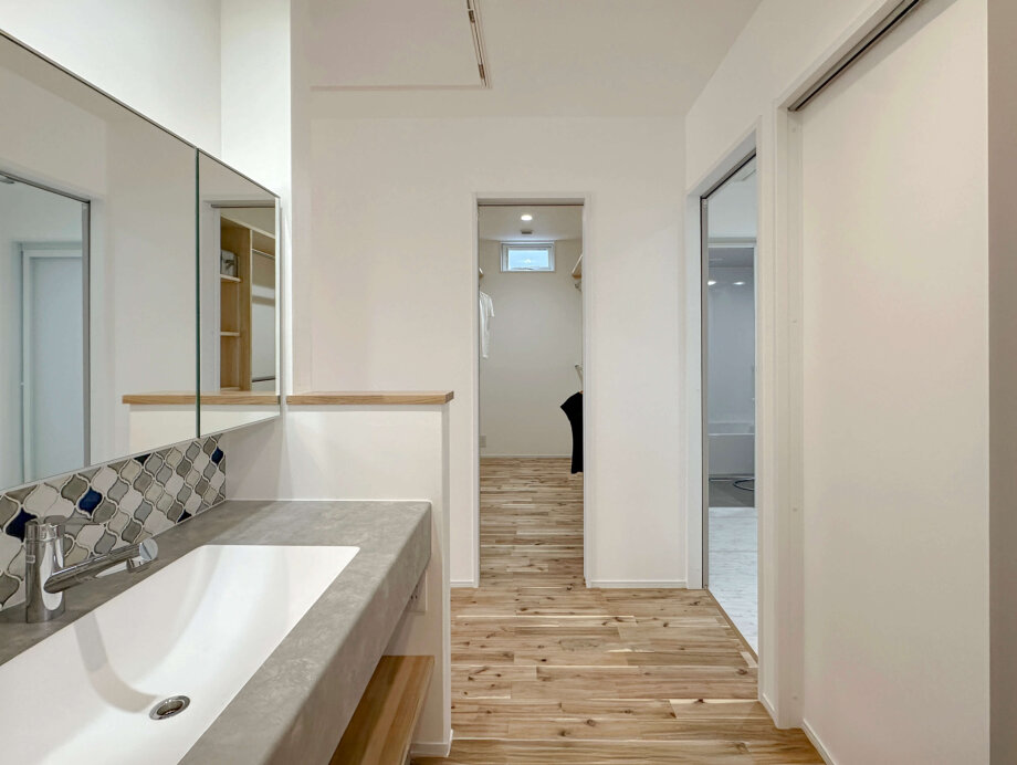 小上がり和室とカーポートを作った事。ランドリールームで洗濯作業が完結し、すぐ隣のWICに服を収納出来るところ。